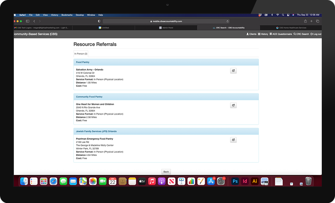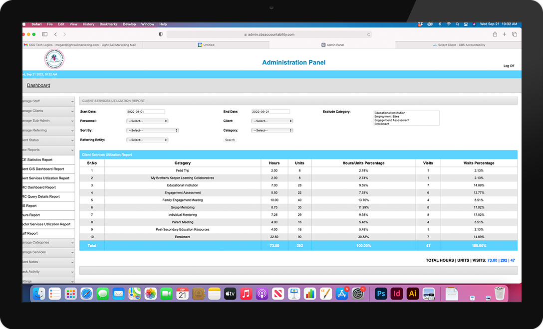 This web-based tool, viewable on a computer or smart device, measures who received services, the type of services rendered, and how often the services occurred. All this is available on a built-in admin dashboard that also provides validation and client signature and a quick and easy generation of reports. Customized utilization of reports and more are also available.